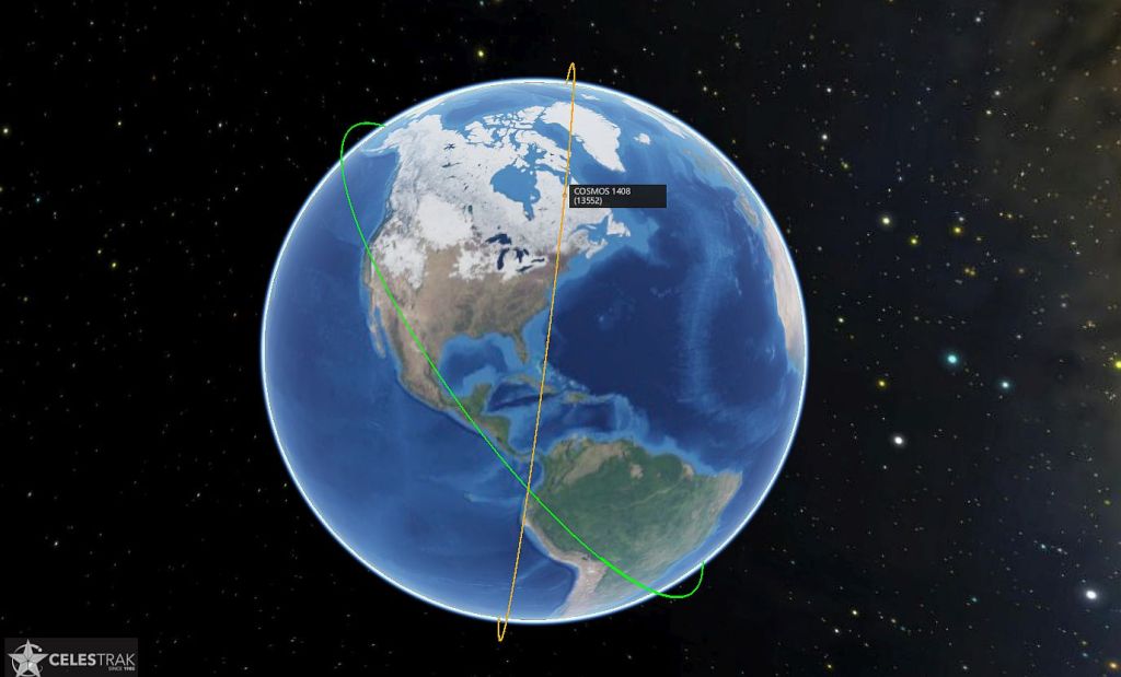L’orbita percorsa dal Cosmos-1408 era inclinata di 82,6° sull’equatore terrestre, praticamente circolare (con il perigeo a 472,0 km d’altezza e l’apogeo a 497,5 km) e impiegava 94,2 minuti per compiere un intero giro. Purtroppo anche la ISS ha un perigeo e un apogeo molto simili (rispettivamente 424,9 km e 431,1 km), mentre l’inclinazione dell’orbita è di 51,6°. Le orbite sono rappresentate nelle Fig. 1 e 2.